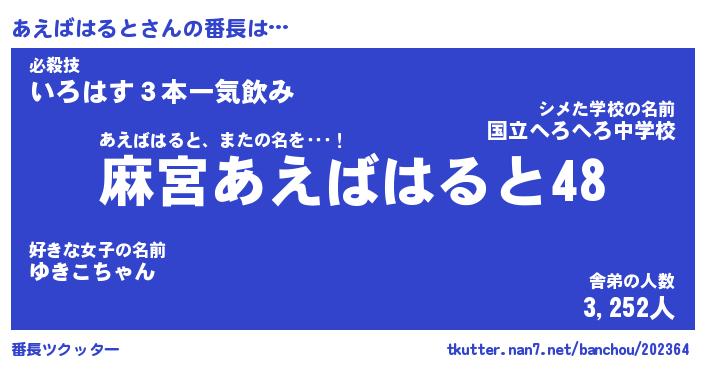 | 恥ずかしいあだ名 | 『プリティーあえばはると』『あえっちょ』 |
