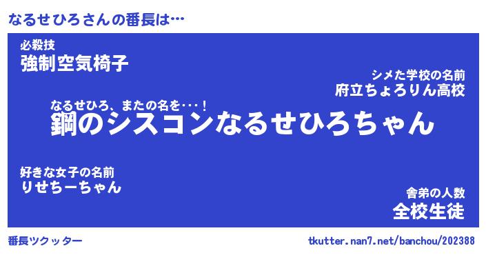 | 肩書あだ名 | 『なるせひろ店長』『なるせひろ国家主席』 |