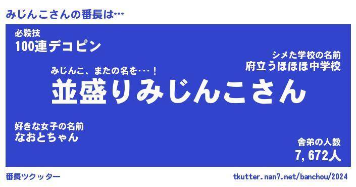 | ポケモン風あだ名 | 『ミジチュウ』『ミジンダネ』 |