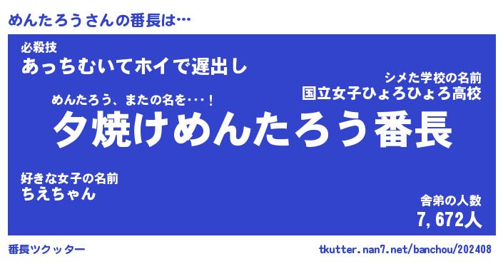| ファンタジー風あだ名 | 『メンフェル』『エターナルメンタロウー』 |