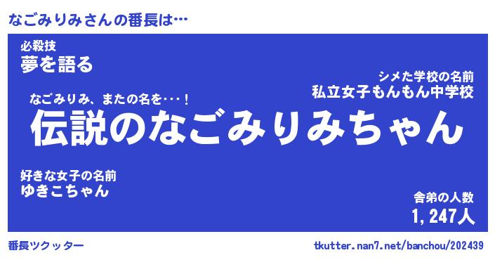 | ヒーロー風カッコイイあだ名 | 『スーパーナゴミリミ』『魔戒騎士ナゴ』 |