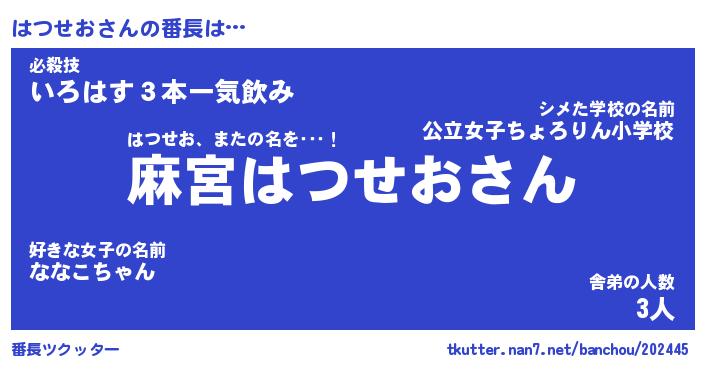 | 肩書あだ名 | 『はつせお店長』『はつせお大統領』 |