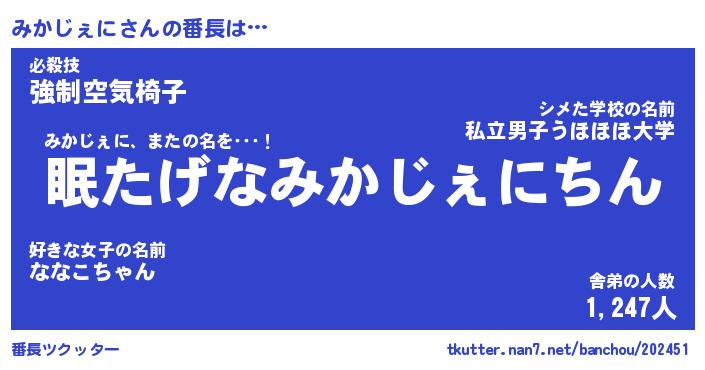 | 肩書あだ名 | 『みかじぇに店長』『みかじぇに総理大臣』 |