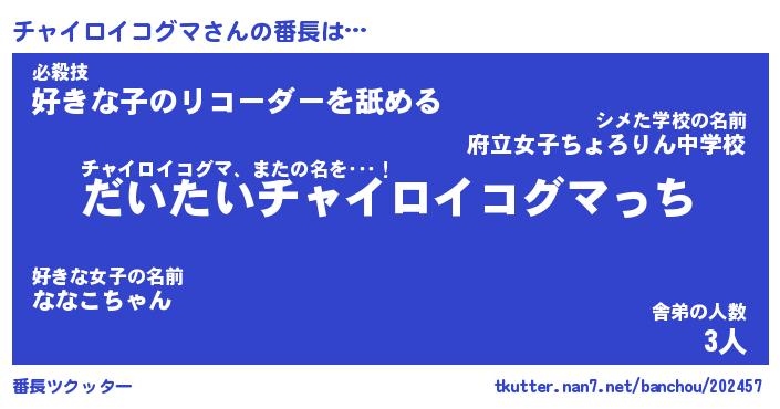 | ヒーロー風カッコイイあだ名 | 『スーパーチャイロイコグマ』 |
