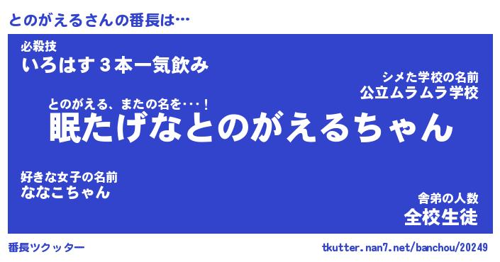 | ファンタジー風あだ名 | 『トノフェル』『エターナルトノガエルー』 |