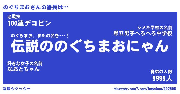 | 伝説のあだ名 | 『伝説のスナイパーのぐちまお』 |