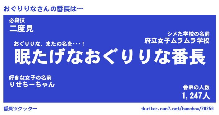 | 伝説のあだ名 | 『封印されしスナイパーおぐりりな』 |