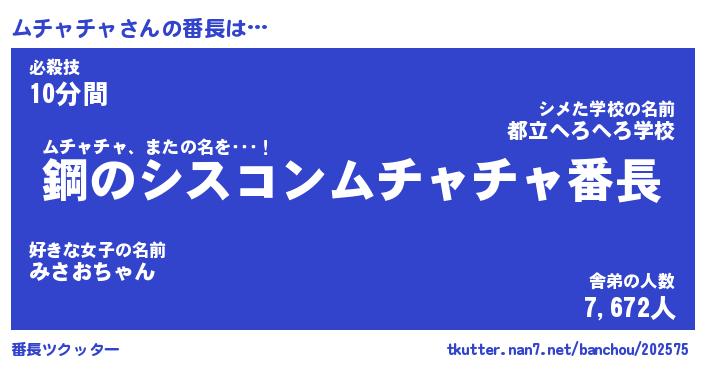 | ヒーロー風カッコイイあだ名 | 『スーパームチャチャ』『炎刃騎士ムチ』 |
