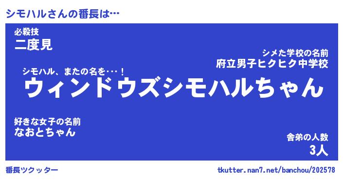 | ファンタジー風あだ名 | 『シモフェル』『エターナルシモハルー』 |