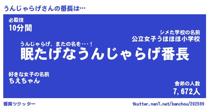 | ヒーロー風カッコイイあだ名 | 『スーパーウンジャラゲ』『炎刃騎士ウン』 |