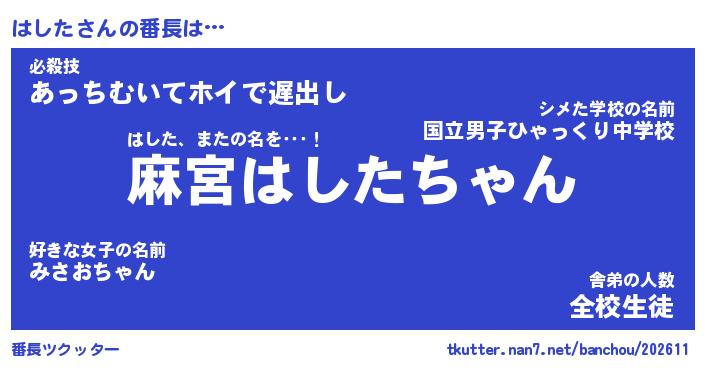 | ヒーロー風カッコイイあだ名 | 『スーパーハシタ』『ウルトラはしたマン』 |