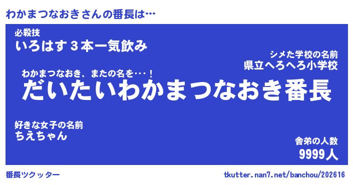 | ヒーロー風カッコイイあだ名 | 『スーパーワカマツナオキ』 |