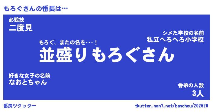 | 意味不明あだ名 | 『ペロリンもろぐ』『もろぐフォーエバー』 |
