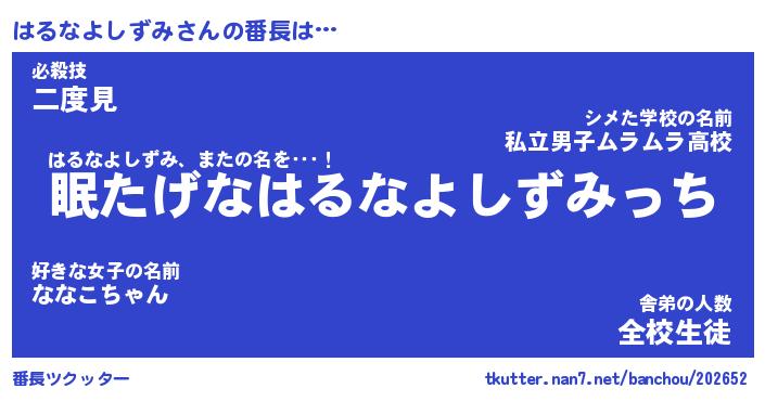 | 2回繰り返すあだ名 | 『はるはる』『ははるる』『ぬるぬる』 |