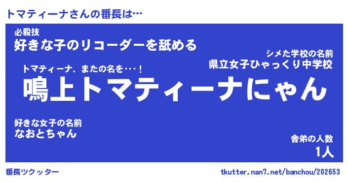 | ヘコむあだ名 | 『トマにゅー』『豆乳』『トマぷりん』 |
