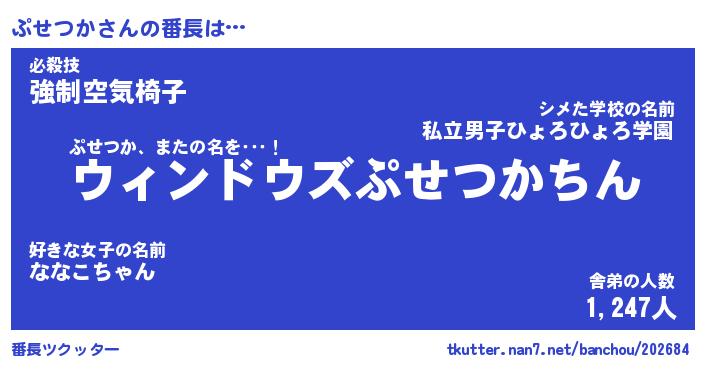 | 肩書あだ名 | 『ぷせつかCEO』『ぷせつか総理大臣』 |