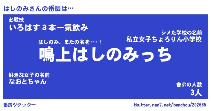| 肩書あだ名 | 『はしのみ社長令嬢』『はしのみ総理大臣』 |