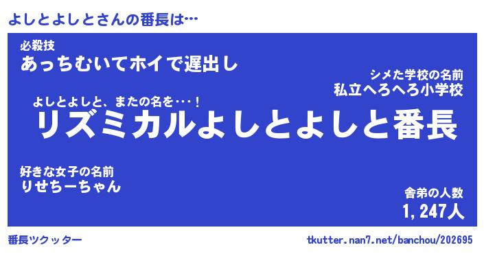 | 意味不明あだ名 | 『ペロリンよしとよしと』 |