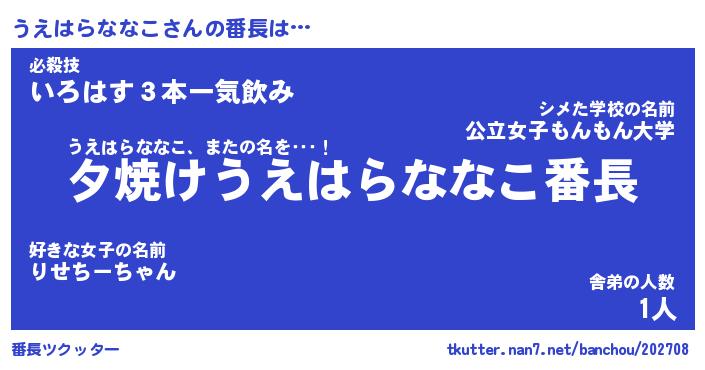 | 伝説のあだ名 | 『封印されしスナイパーうえはらななこ』 |
