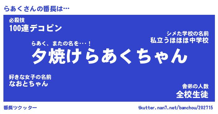 | ヒーロー風カッコイイあだ名 | 『スーパーラアク』『ウルトラらあくマン』 |