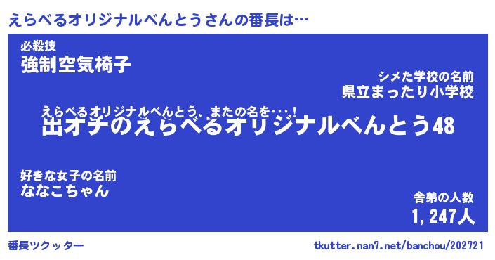 | 男性向けラノベタイトル風あだ名 | 『えらべるオリジナルべんとうの憂鬱』 |