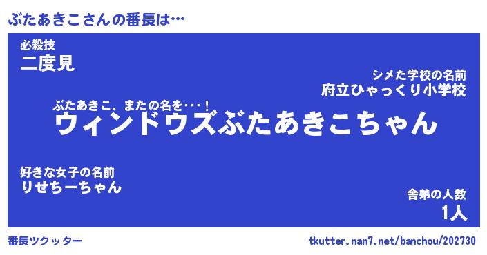 | ピコ太郎風あだ名 | 『ブコ一郎』『ピブ六郎』『ブタ史郎』 |
