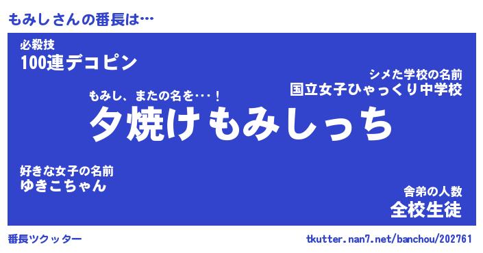 | ファンタジー風あだ名 | 『モミフェル』『エターナルモミシー』 |