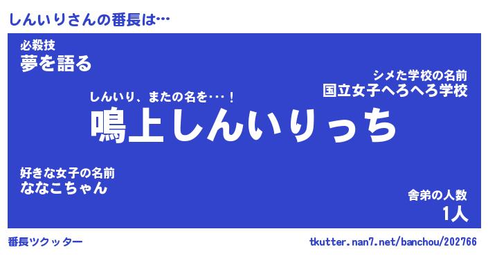 | 意味不明あだ名 | 『ペロリンしんいり』『永久保存しんいり』 |