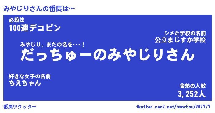 | ピコ太郎風あだ名 | 『ミコ六郎』『ピミ次郎』『ミヤ十郎』 |