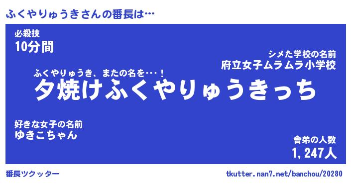 | ヒーロー風カッコイイあだ名 | 『スーパーフクヤリュウキ』 |