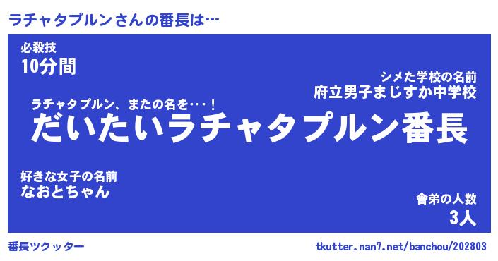 | ヒーロー風カッコイイあだ名 | 『スーパーラチャタプルン』 |