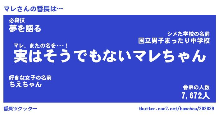 | ピコ太郎風あだ名 | 『マコ一郎』『ピマ太郎』『マレ六郎』 |