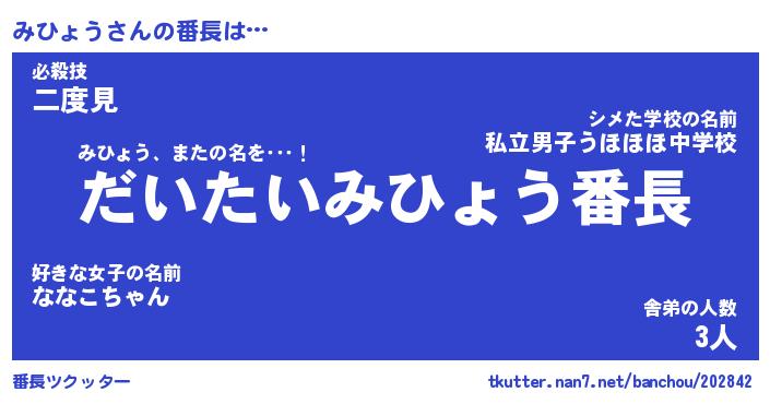 | ピコ太郎風あだ名 | 『ミコ四郎』『ピミ史郎』『ミヒ五郎』 |