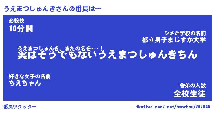 | ポケモン風あだ名 | 『ウエチュウ』『ウエマダネ』 |