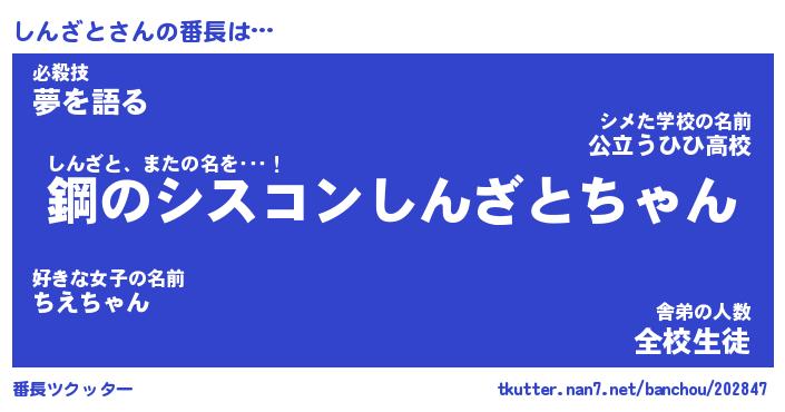 | 意味不明あだ名 | 『ペロリンしんざと』『永久保存しんざと』 |