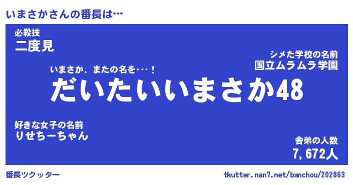 | ヘコむあだ名 | 『いまもー』『なまこ酢』『いまっ子』 |