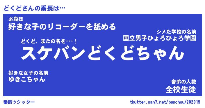 | ヒーロー風カッコイイあだ名 | 『スーパードクド』『ウルトラどくどマン』 |