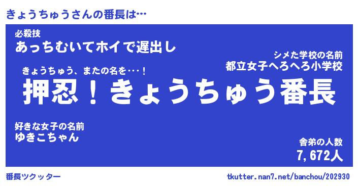 | ヒーロー風カッコイイあだ名 | 『スーパーキョウチュウ』『炎刃騎士キョ』 |