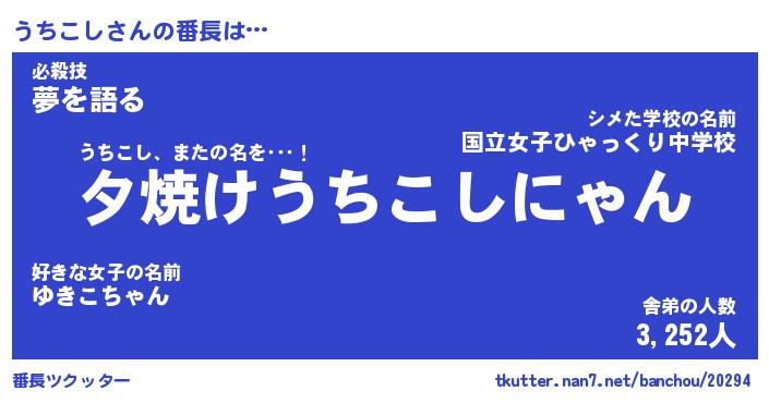 | ポケモン風あだ名 | 『ウチチュウ』『ウチコダネ』 |