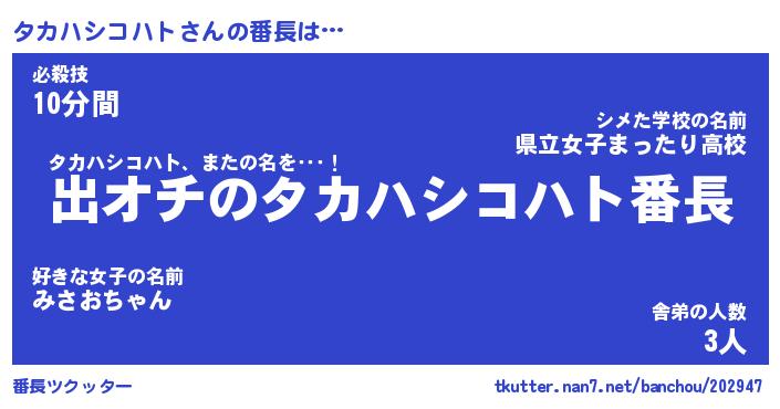 | 伝説のあだ名 | 『伝説のスナイパータカハシコハト』 |