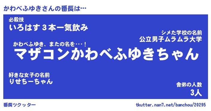 | ヒーロー風カッコイイあだ名 | 『スーパーカワベフユキ』『魔戒騎士カワ』 |