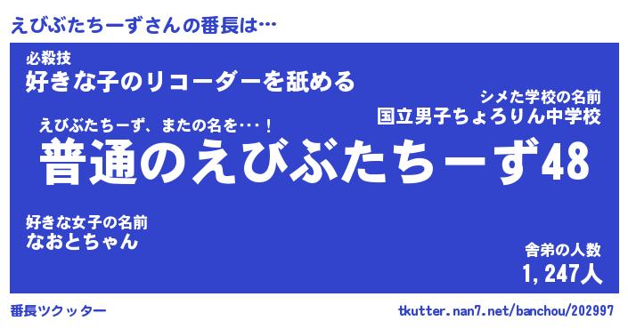| ポケモン風あだ名 | 『エビチュウ』『エビブダネ』 |
