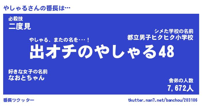 | 欧米人風あだ名 | 『マイケルやしゃる』『ウサインやしゃる』 |