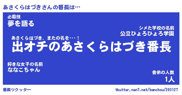 | ヒーロー風カッコイイあだ名 | 『スーパーアサクラハヅキ』 |