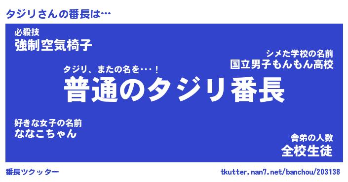 | ヒーロー風カッコイイあだ名 | 『スーパータジリ』『ウルトラタジリマン』 |