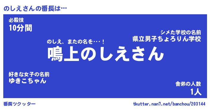 | 肩書あだ名 | 『のしえ御曹司』『のしえ国家主席』 |
