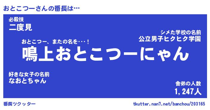 | 肩書あだ名 | 『おとこつー店長』『おとこつー国家主席』 |
