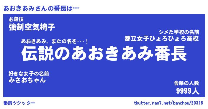 | 伝説のあだ名 | 『伝説のスナイパーあおきあみ』 |
