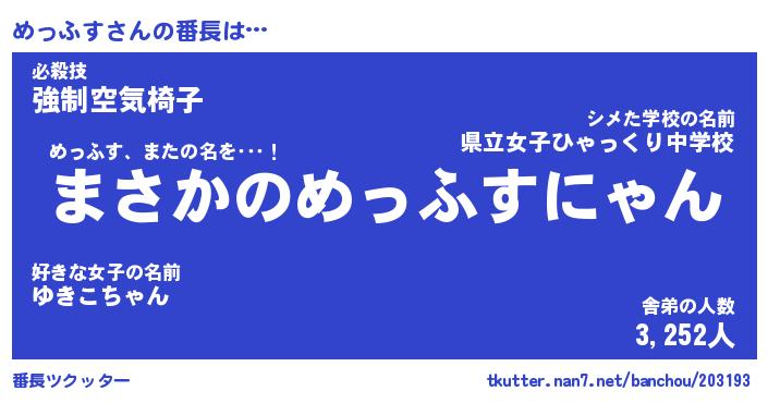 | 欧米人風あだ名 | 『マイケルめっふす』『ウサインめっふす』 |
