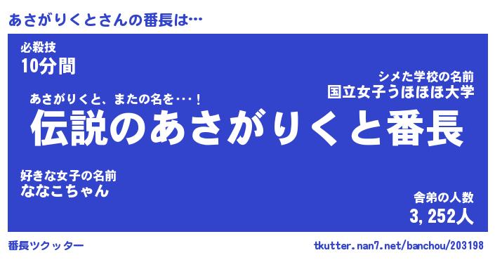 | ポケモン風あだ名 | 『アサチュウ』『アサガダネ』 |